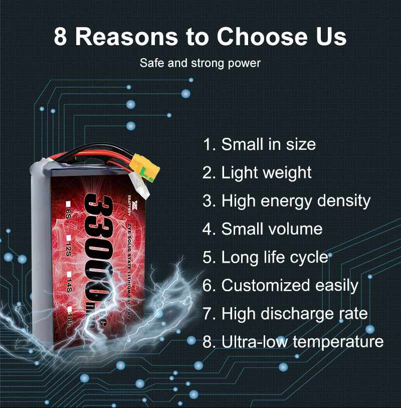 Avanceret teknologi: Solid-state batterier med høj energitæthed og sikkerhed, herunderLetvægts faststof-lithiumbatteri 32000mAh 30000MAH 5C10C Let at tilpasse 2S3S45S6S UAVS-batteripakke.