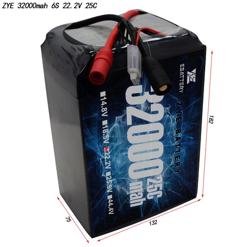 | 32000mAh | 6S1p (22.2V) | 4000g (± 10 g) | 182*75*132mm | 710.4wh | 25c 800a | 50c 1600a |