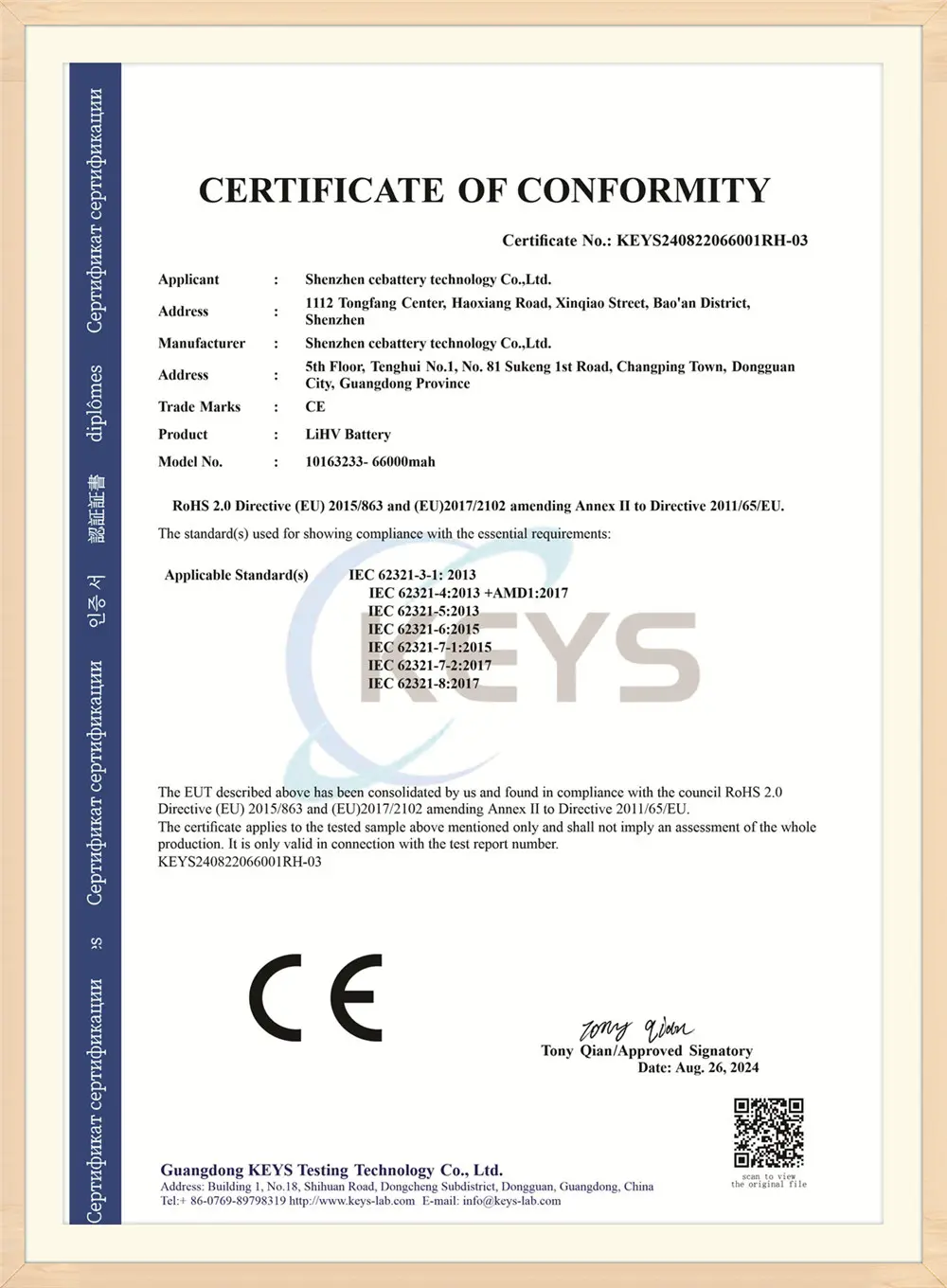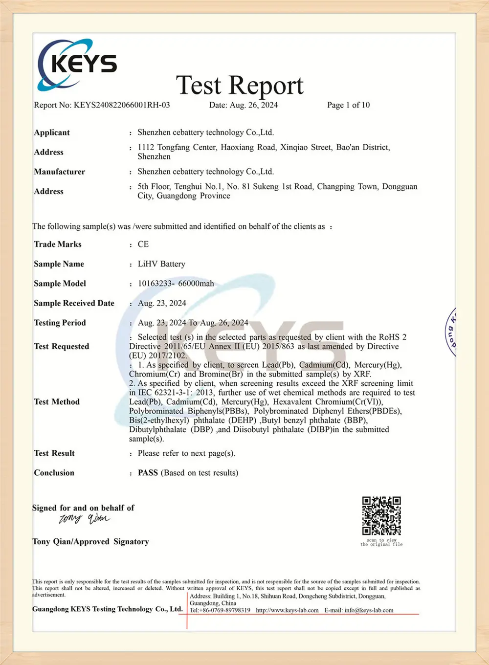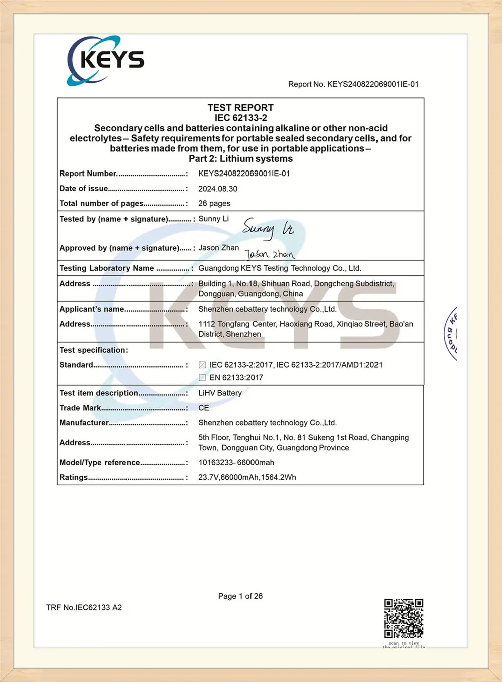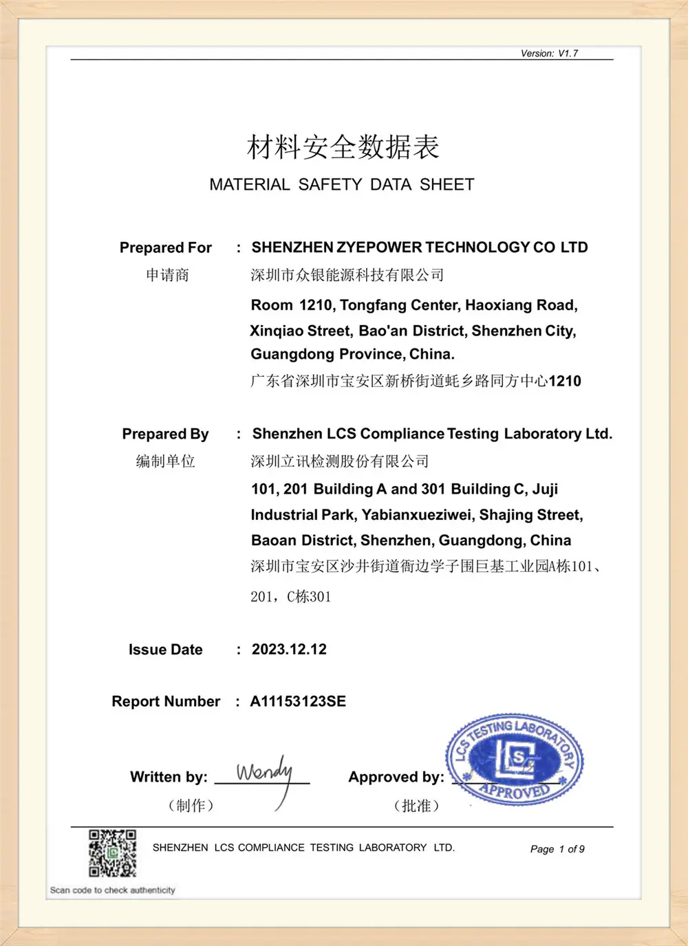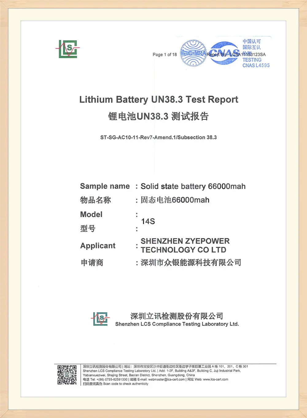 Zyebatteyforfølger altid forretningsfilosofien om "kvalitets første, serviceorienterede, integritetsopbevaringsløfter". For at være den bedste og mest stabile batterileverandør leverer vi genopladelig batteriteknologi af høj kvalitet, og Zyebattey har bestået mange autoritetscertificeringer, såsom ISO9001: 2015, UL, CE, FCC, FN, 3C osv.