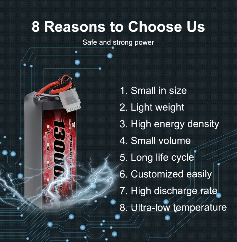 Produkter af høj kvalitet: Vores batterier genkendes for deres overlegne teknologi og ydeevne, herunder voresSolid State Battery Producent High Energy Density Solid State Battery 11000MAH 5C 10C 3S6S Drone Batteries, designet til at imødekomme de høje krav fra drone -applikationer.